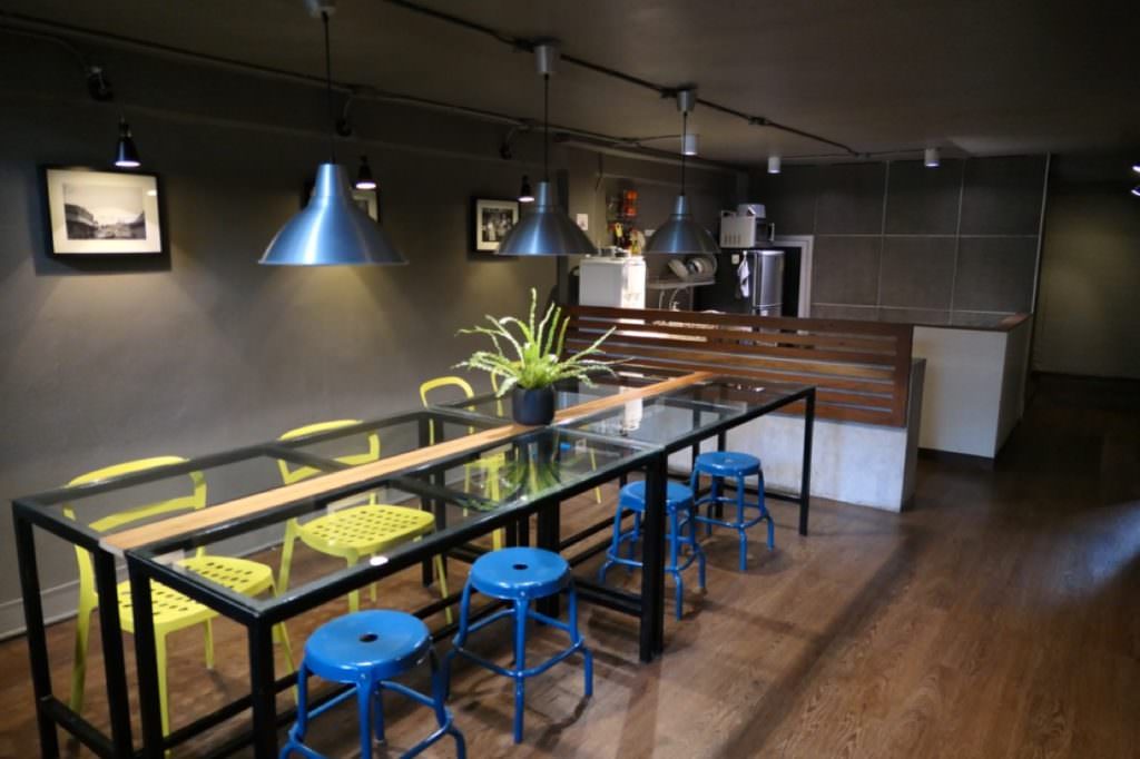 一樓除了有交誼廳以外,也有用餐區,空間一樣很寬敞、佈置溫馨,設有簡易廚房,每天早上旅客們可以在此想用簡單的早餐(免費的),如果你有帶外食回來,這邊也有微波爐、餐具、飲水機、冰箱可以使用!